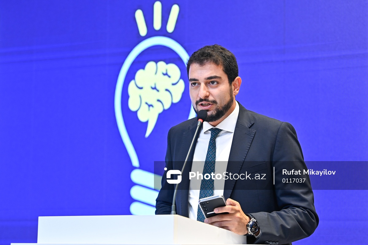 "Mədəniyyətimiz, Mətbuatımız: 150 İl Birlikdə!" adlı tədbirdə çıxış edən aparıcı Sadiq Yusifli.