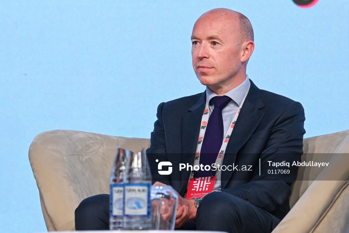 III Şuşa Qlobal Media Forumunun üçüncü günü çərçivəsində keçirilən “Sosial medianın təkamülü ictimai etimada necə təsir edir: Media savadlılığının əhatəsində” mövzusunda paneldə iştirak edən LinkedIn şirkətinin EMEA (Avropa, Yaxın Şərq və Afrika) və LATAM (Latın Amerikası) regionları üzrə ictimai sektor, səhiyyə və qeyri-kommersiya satış sahələrinin rəhbəri Simas Klansi.