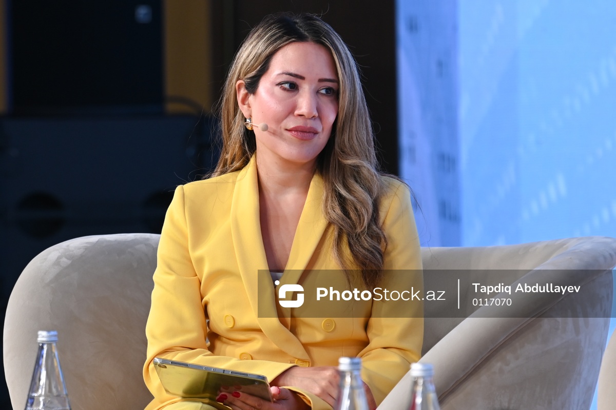 III Şuşa Qlobal Media Forumunun üçüncü günü çərçivəsində keçirilən  “Sosial medianın təkamülü ictimai etimada necə təsir edir: Media savadlılığının əhatəsində” mövzusunda panelin moderatoru “TRT World” telekanalının aparıcısı Mariam Zaidi.