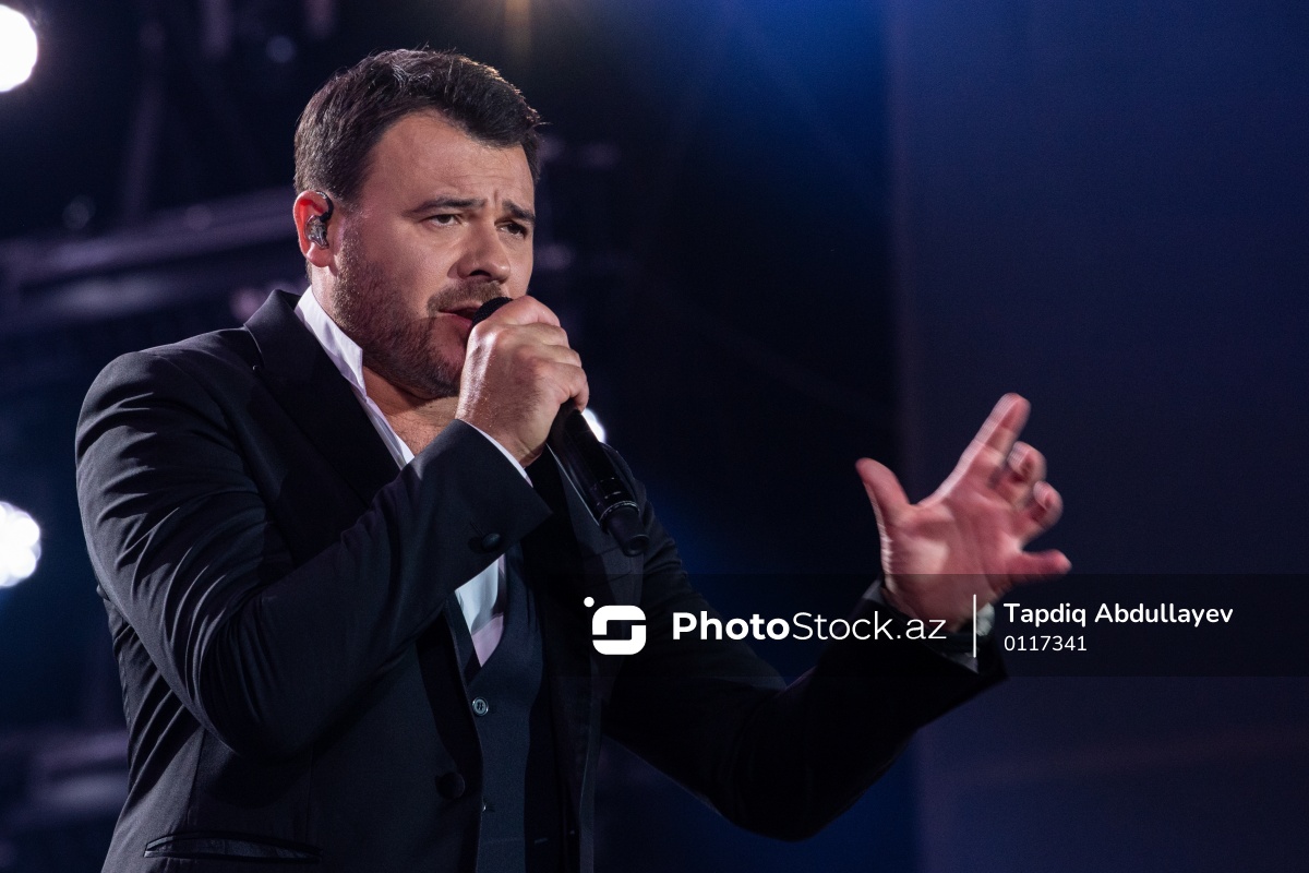 Bakıda keçirilən "DREAM FEST 2025" Beynəlxalq Musiqi Festivalında iştirak edən Azərbaycanın xalq artisti, bəstəkar, müğənni, biznesmen Emin Ağalarov.