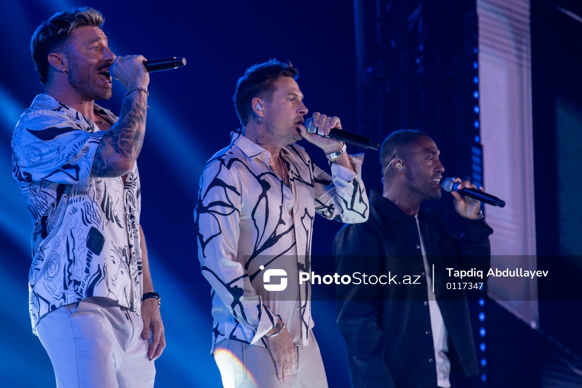 Bakıda keçirilən "DREAM FEST 2025" Beynəlxalq Musiqi Festivalında iştirak edən “Blue” qrupunun üzvləri (soldan-sağa) Duncan James, Lee Ryan, Simon Webbe.