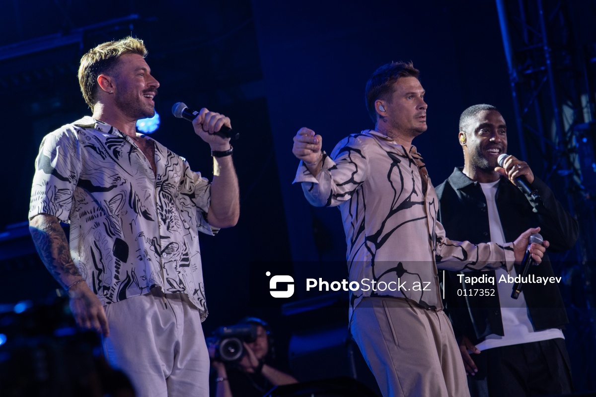 Bakıda keçirilən "DREAM FEST 2025" Beynəlxalq Musiqi Festivalında iştirak edən “Blue” qrupunun üzvləri (soldan-sağa) Duncan James, Lee Ryan, Simon Webbe.