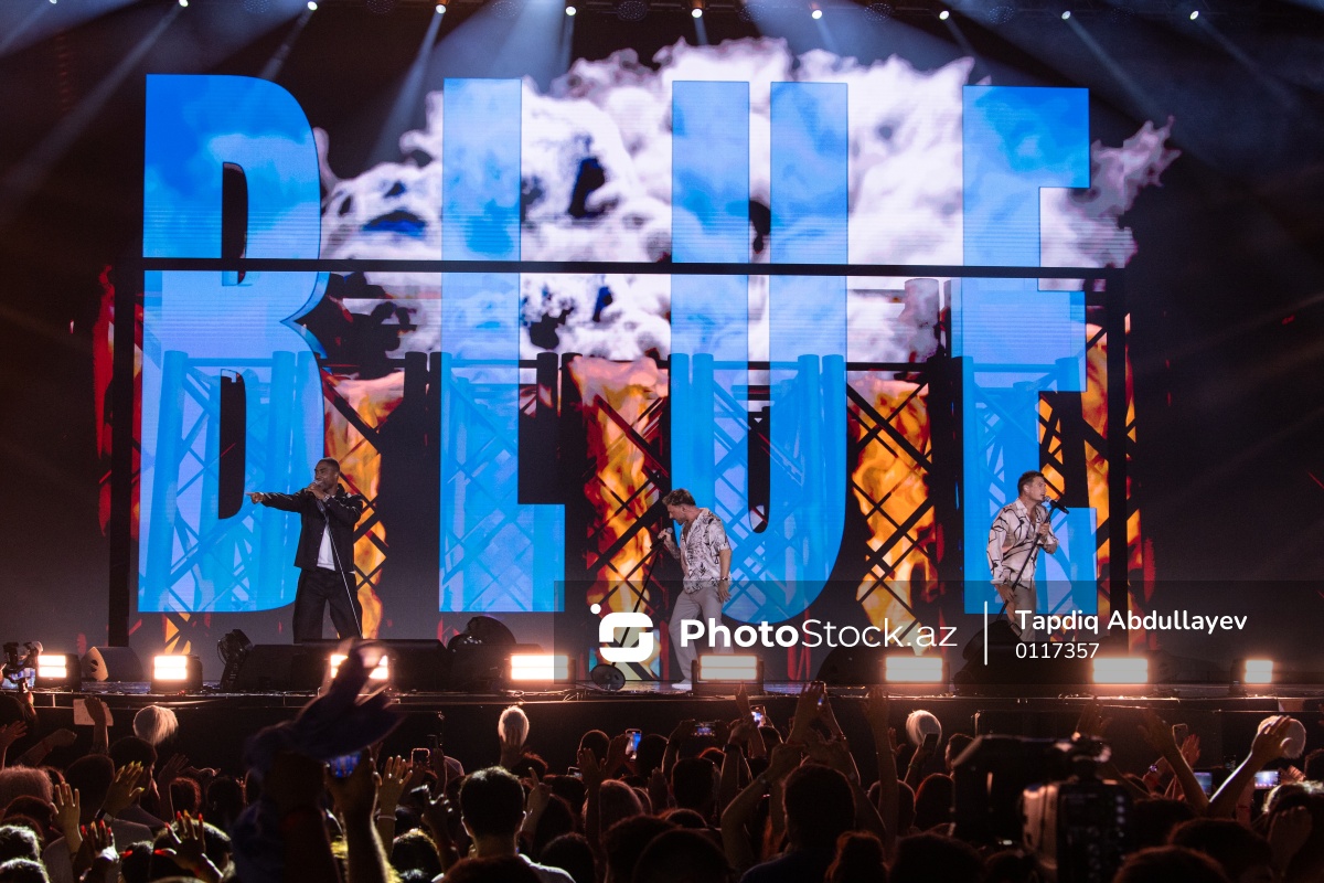 Bakıda keçirilən "DREAM FEST 2025" Beynəlxalq Musiqi Festivalında iştirak edən “Blue” qrupunun üzvləri (soldan-sağa) Simon Webbe, Duncan James, Lee Ryan.