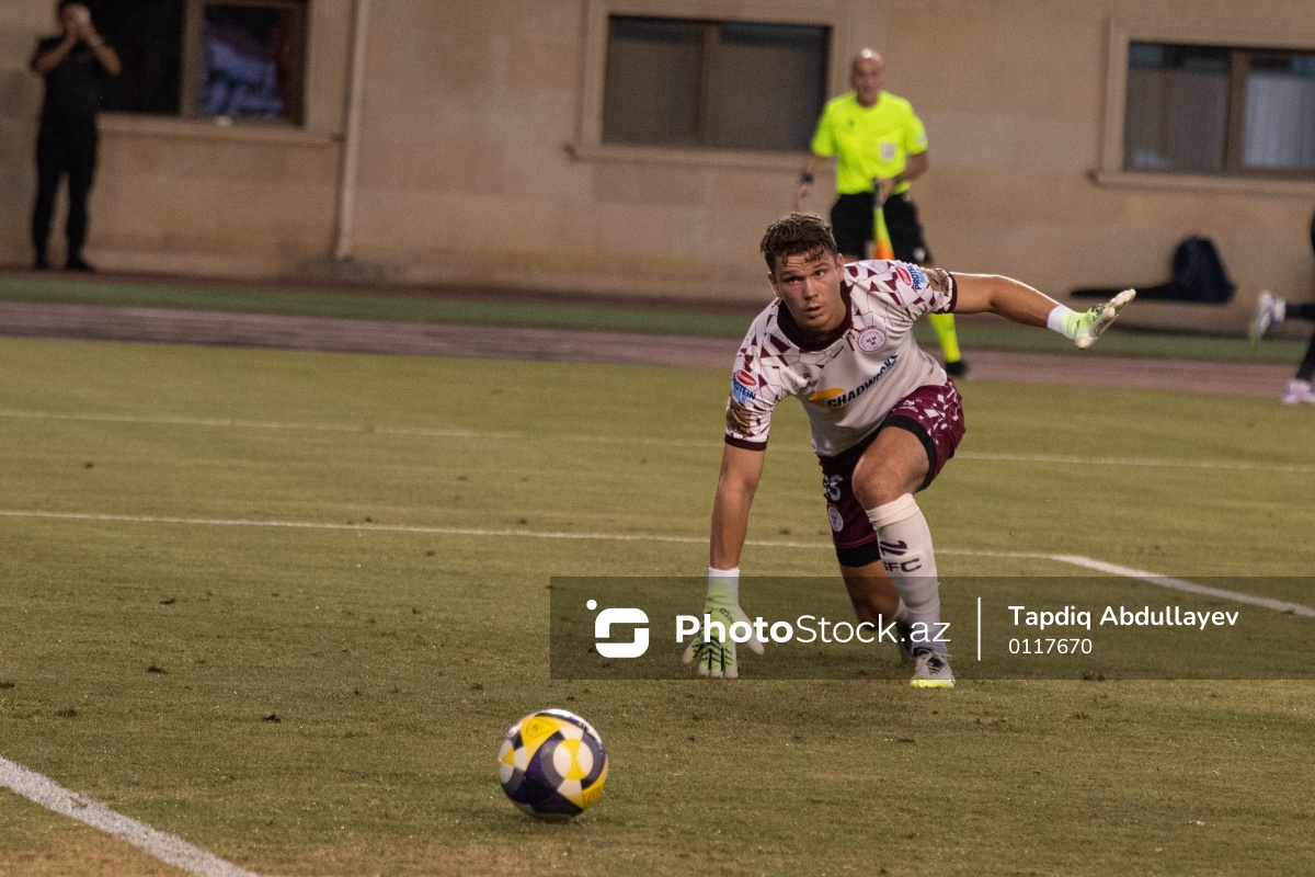 30.07.2025 Tofiq Bəhramov adına Respublika stadionunda UEFA Çempionlar Liqasının “Qarabağ” - "Şelburn" oyununda "Şelburn"nun qapıçısı Wessel Speel.