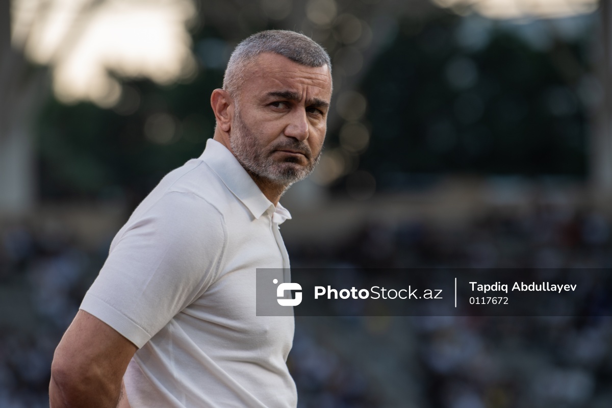 30.07.2025 Tofiq Bəhramov adına Respublika stadionunda UEFA Çempionlar Liqasının “Qarabağ” - "Şelburn" oyununda “Qarabağ”ın baş məşqçisi Qurban Qurbanov.