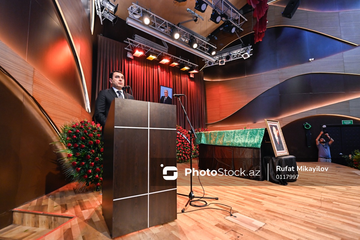 Xalq artisti Arif Babayevlə keçirilən vida mərasimində çıxış edən Azərbaycan Respublikasının mədəniyyət naziri Adil Kərimli.