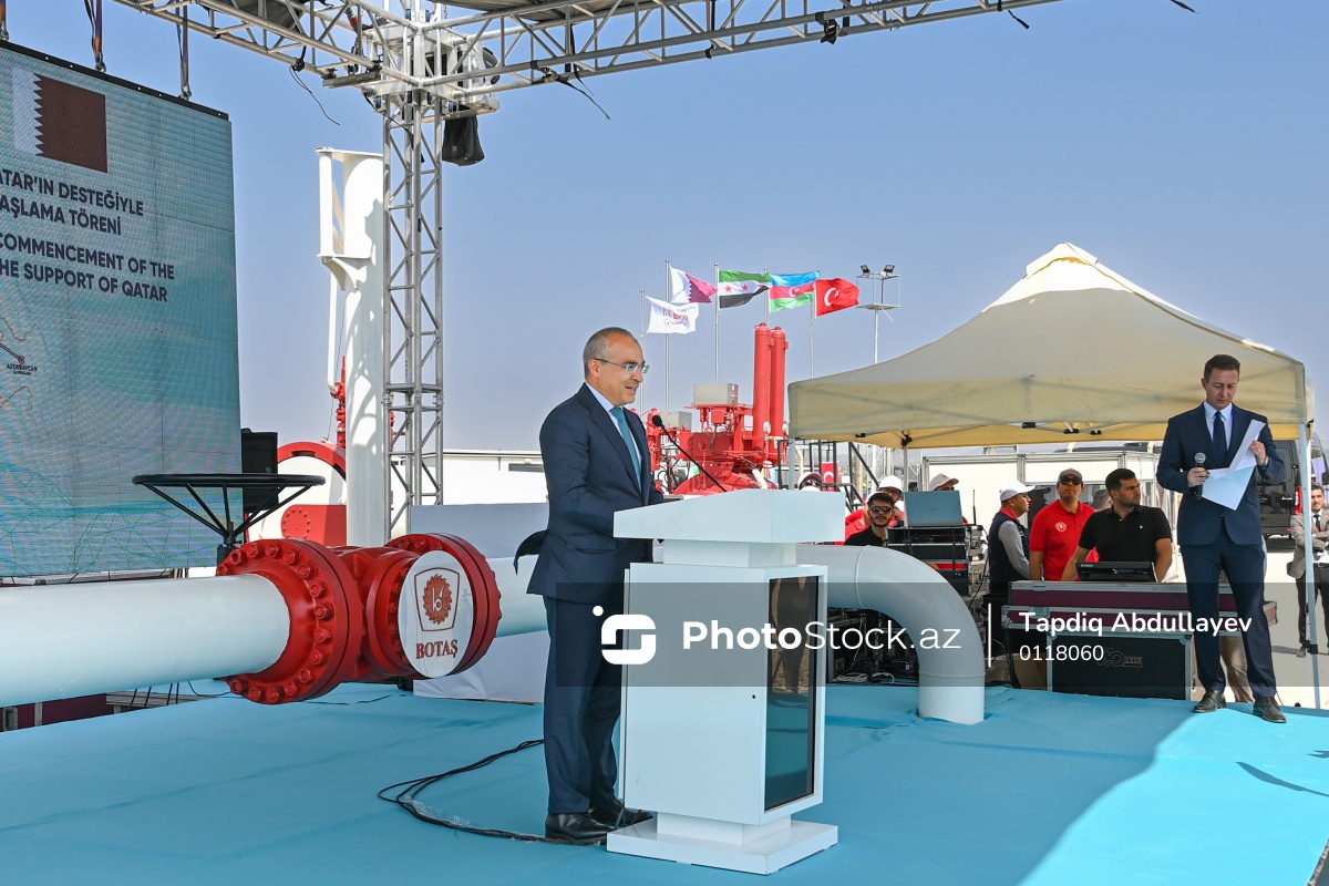 Türkiyənin Kilis şəhərinin Yavuzlu kəndində Türkiyə-Suriya qaz boru kəmərinin açılış mərasimində çıxış edən Azərbaycan Respublikasının iqtisadiyyat naziri, SOCAR-ın Müşahidə Şurasının sədri Mikayıl Cabbarov.