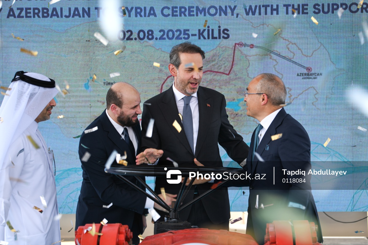 Türkiyənin Kilis şəhərinin Yavuzlu kəndində Azərbaycan qazının Türkiyə ərazisindən Suriyaya nəqlini təmin edəcək Türkiyə-Suriya təbii qaz boru kəmərinin rəsmi açılış mərasimində iştirak edən (soldan-sağa) Qətər İnkişaf Fondunun rəhbəri Fəhad Həmad Həssan Əl-Sulaiti, Suriyanın energetika naziri Məhəmməd Əl Bəşir, Türkiyənin energetika və təbii sərvətlər naziri Alparslan Bayraktar və Azərbaycanın iqtisadiyyat naziri Mikayıl Cabbarov.