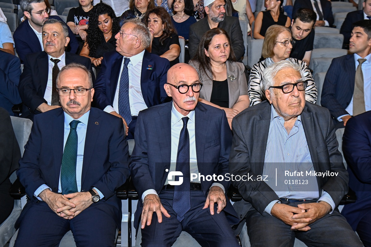 (soldan-sağa) Türkiyə Respublikasının Azərbaycandakı fövqəladə və səlahiyyətli səfiri Birol Akgün, Azərbaycan Respublikasının elm və təhsil nazirinin müavini Firudin Qurbanov, Azərbaycan Yazıçılar Birliyinin sədri, təcüməçi, şair, ssenarist, Xalq yazıçısı Anar Rzayev.