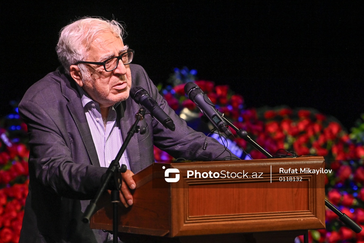 Xalq yazıçısı Elçin Əfəndiyevin vida mərasimində çıxış edən Azərbaycan Yazıçılar Birliyinin sədri, təcüməçi, şair, ssenarist, Xalq yazıçısı Anar Rzayev.