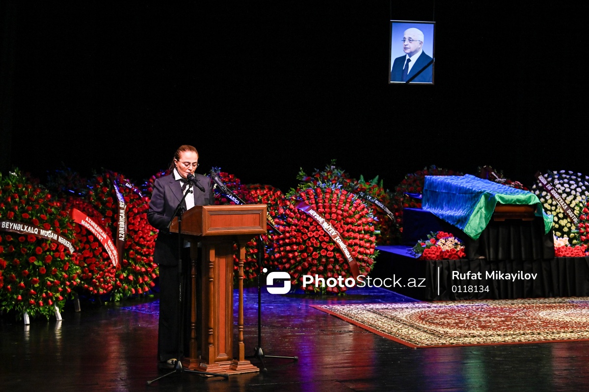 Xalq yazıçısı Elçin Əfəndiyevin vida mərasimində çıxış edən mədəniyyət nazirinin müavini Səadət Yusifova.