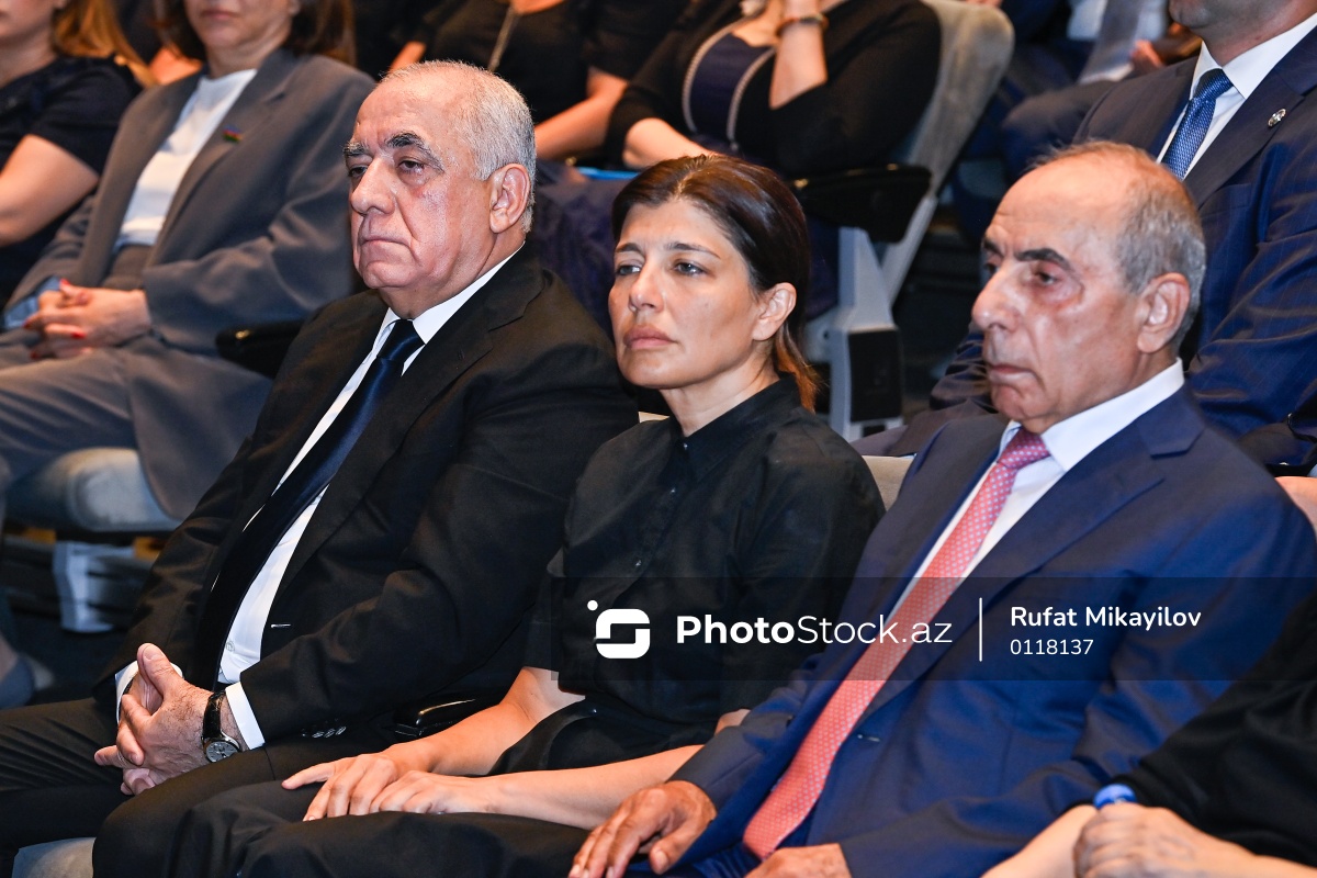 (soldan-sağa) Azərbaycan Respublikasının Baş naziri Əli Əsədov, Milli Məclisin deputatı, Xalq yazıçısı Elçin Əfəndiyevin qızı Günay Əfəndiyeva, Azərbaycan Respublikası Baş nazirinin I müavini Yaqub Eyyubov.