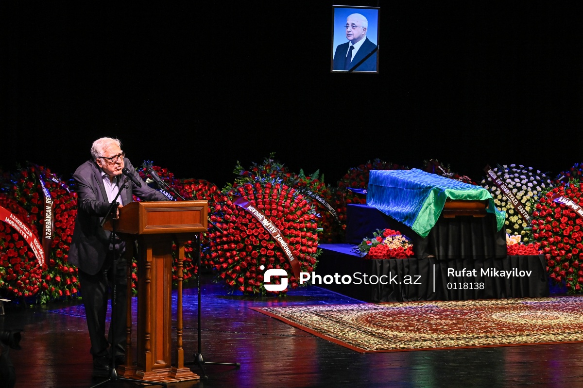 Xalq yazıçısı Elçin Əfəndiyevin vida mərasimində çıxış edən Azərbaycan Yazıçılar Birliyinin sədri, təcüməçi, şair, ssenarist, Xalq yazıçısı Anar Rzayev.