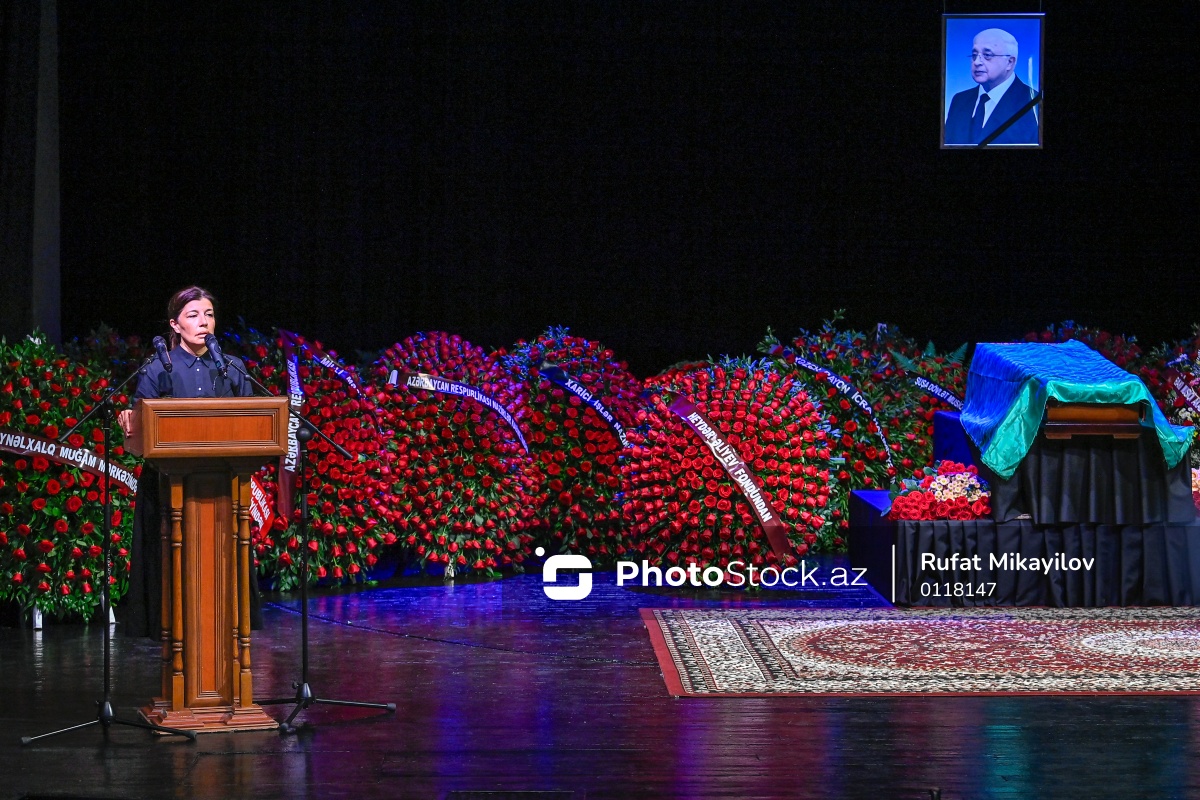 Xalq yazıçısı Elçin Əfəndiyevin vida mərasimində çıxış edən Milli Məclisin deputatı, Xalq yazıçısı Elçin Əfəndiyevin qızı Günay Əfəndiyeva.