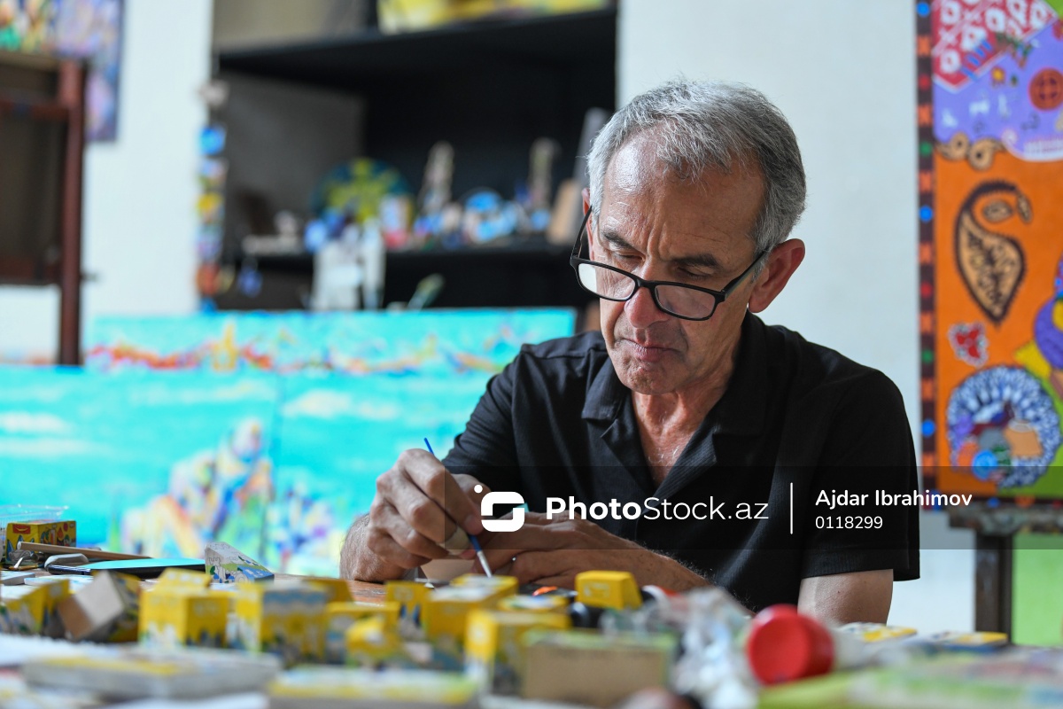 Taxta üzərində müxtəlif rəsmlər canlandıran 65 yaşlı İqbal Həsənəlizadə