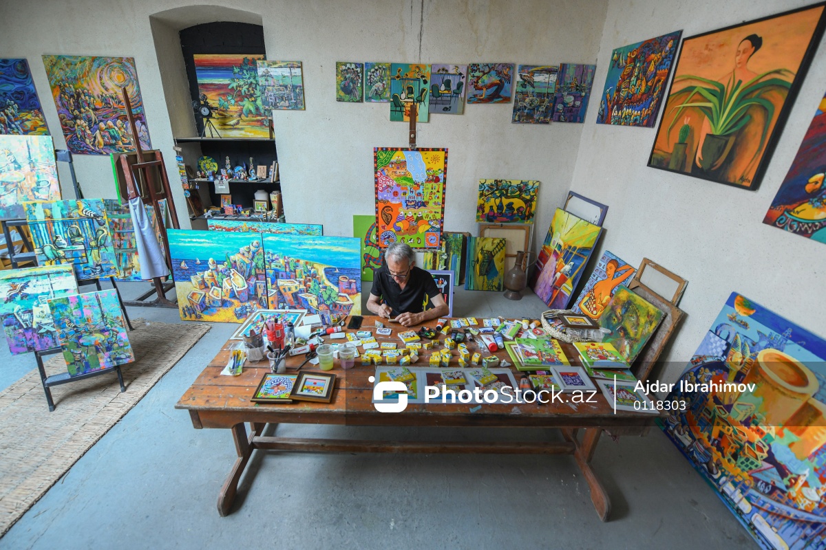 Taxta üzərində müxtəlif rəsmlər canlandıran 65 yaşlı İqbal Həsənəlizadə