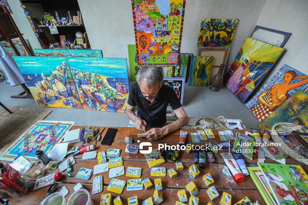 Taxta üzərində müxtəlif rəsmlər canlandıran 65 yaşlı İqbal Həsənəlizadə