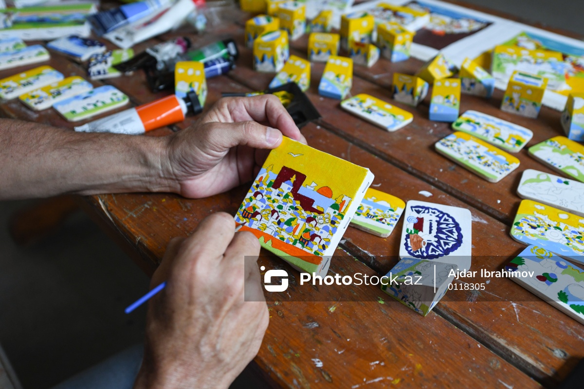 Taxta üzərində müxtəlif rəsmlər canlandıran 65 yaşlı İqbal Həsənəlizadə