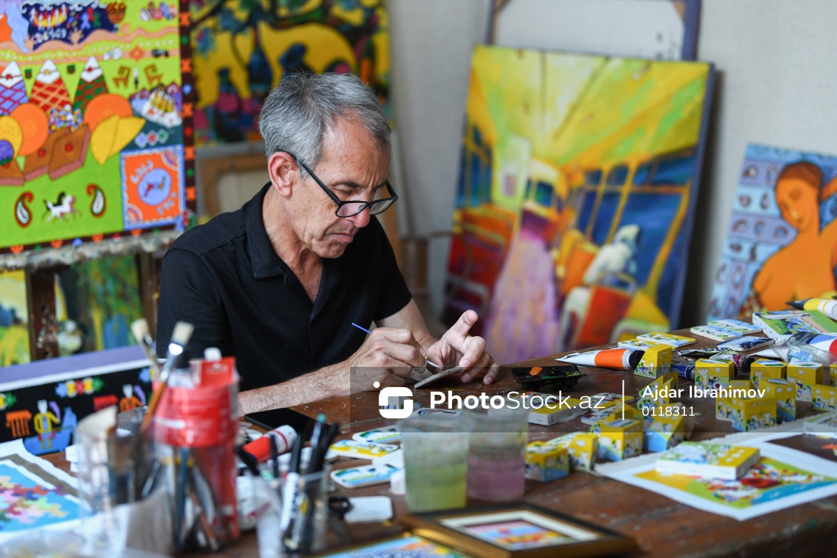 Taxta üzərində müxtəlif rəsmlər canlandıran 65 yaşlı İqbal Həsənəlizadə