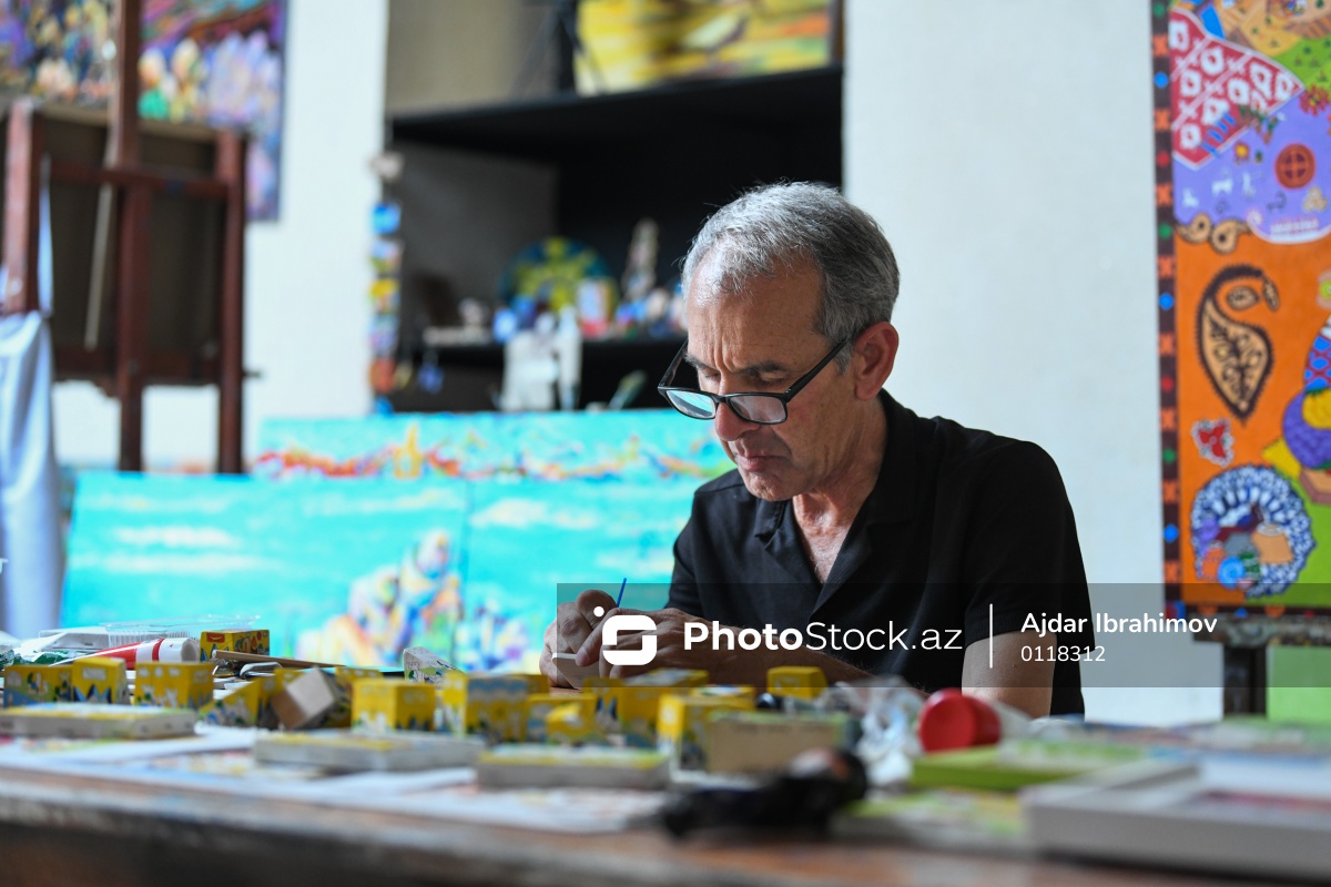 Taxta üzərində müxtəlif rəsmlər canlandıran 65 yaşlı İqbal Həsənəlizadə