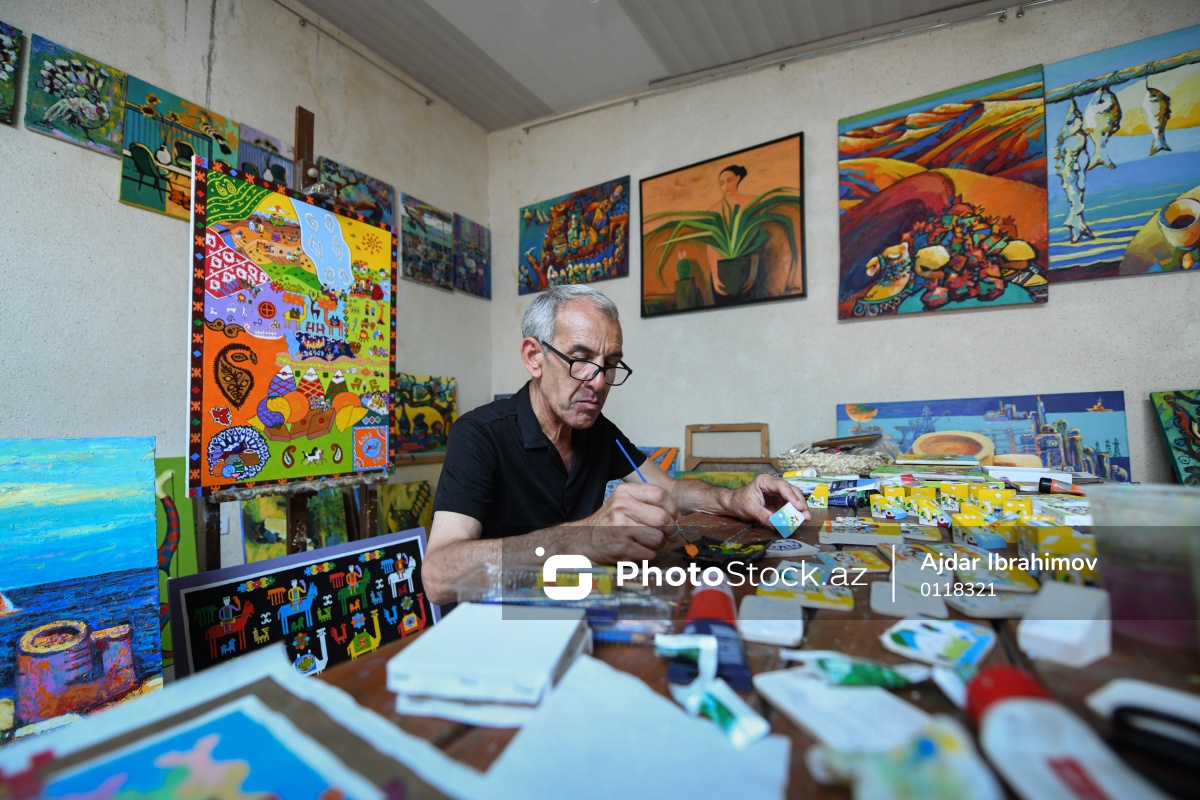 Taxta üzərində müxtəlif rəsmlər canlandıran 65 yaşlı İqbal Həsənəlizadə