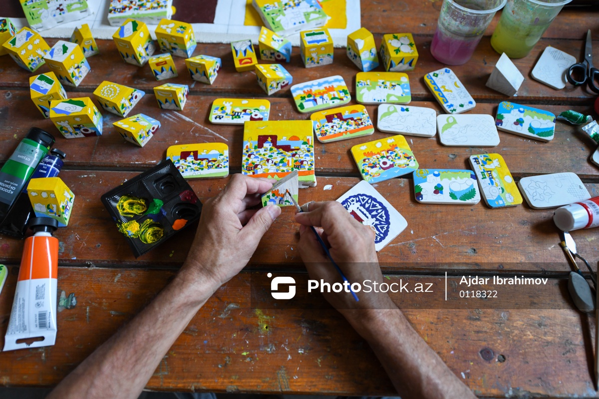 Taxta üzərində müxtəlif rəsmlər canlandıran 65 yaşlı İqbal Həsənəlizadə
