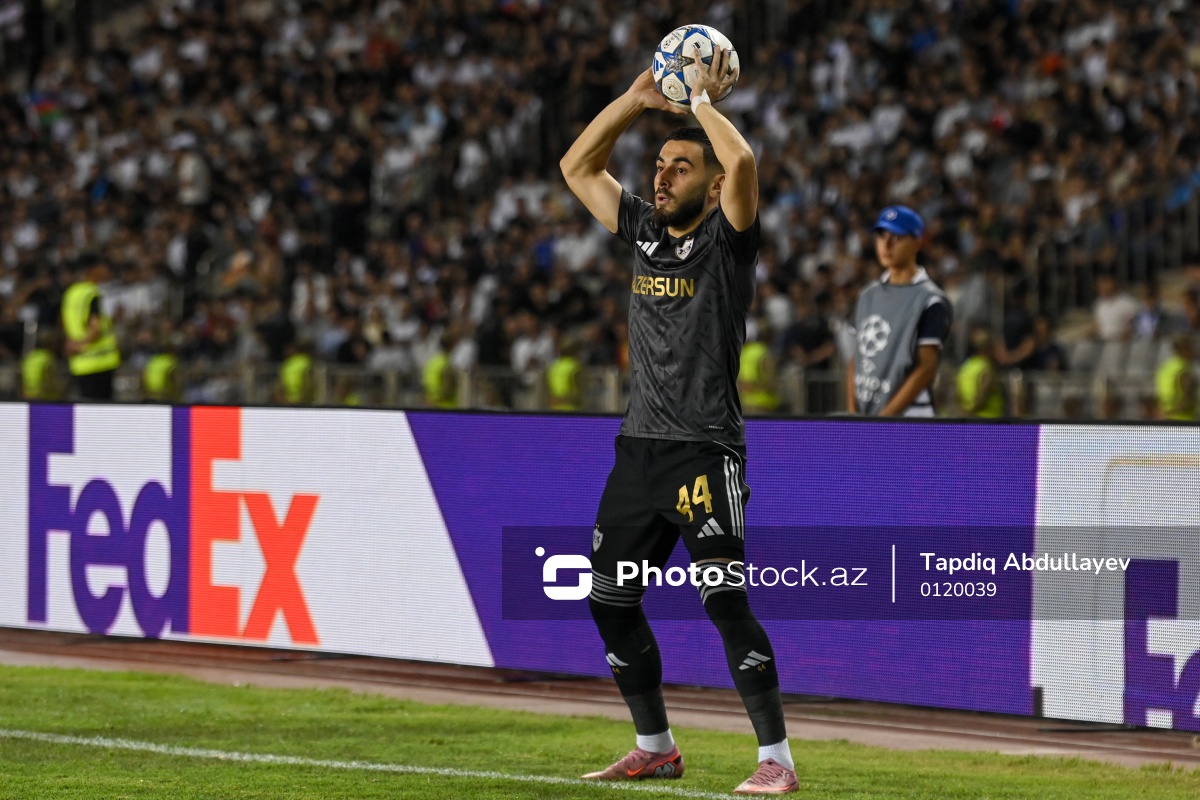 27.08.2025 Tofiq Bəhramov adına Respublika stadionu, UEFA Çempionlar Liqasının “Qarabağ” -  “Ferentsvaroş" oyununda “Qarabağ”ın futbolçusu Elvin Cəfərquliyev.