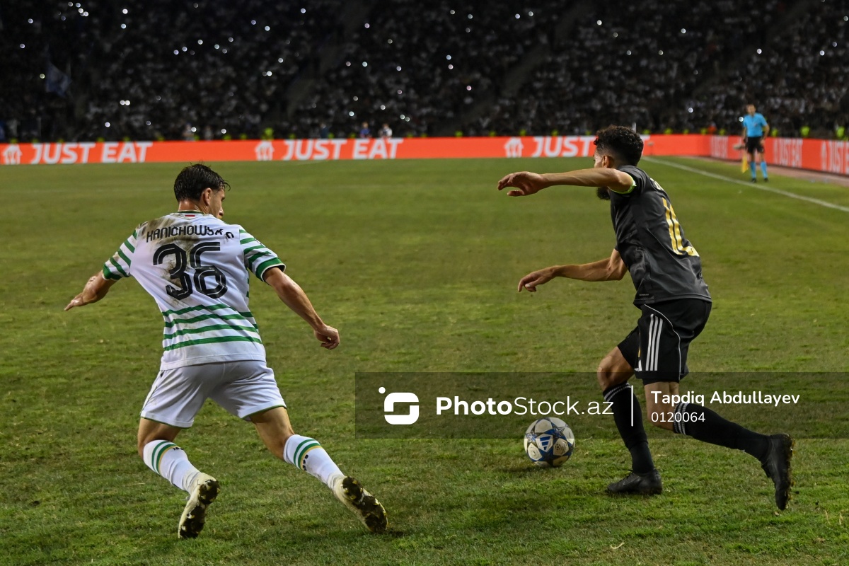 27.08.2025 Tofiq Bəhramov adına Respublika stadionu, UEFA Çempionlar Liqasının “Qarabağ” - “Ferentsvaroş" oyununda “Ferentsvaroş"un oyunçusu Gabi Kanichowsky (sol), “Qarabağ”ın oyunçusu Abdullah Zubir (sağ) mübarizəsi.
