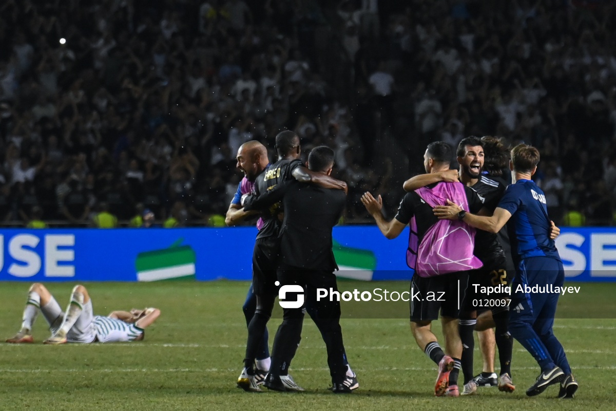 27.08.2025 Tofiq Bəhramov adına Respublika stadionu, UEFA Çempionlar Liqasının “Qarabağ” - “Ferentsvaroş" oyununda “Qarabağ”ın futbolçuları qələbə sevincini yaşayır.