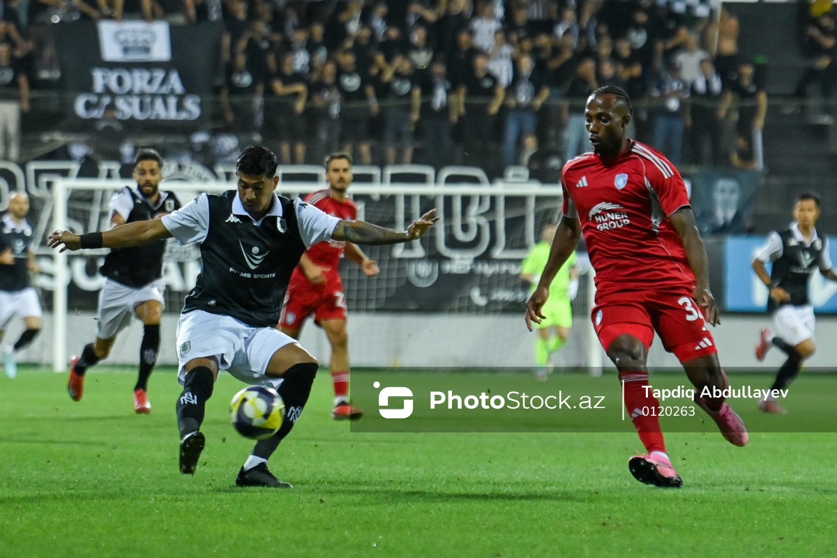 29.08.2025 “Neftçi Arena”, Misli Premyer Liqasının “Neftçi” – “Turan Tovuz” oyununda “Neftçi” futbol klubunun oyunçusu Freddi Varqas (sol), “Turan Tovuz” futbol klubunun oyunçusu Hayderson Hurtado (sağ) mübarizəsi.