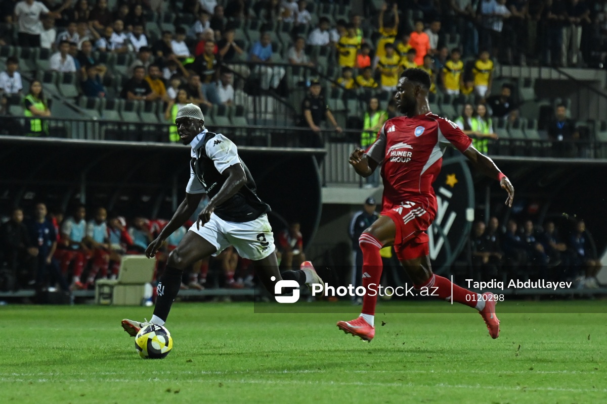 29.08.2025 “Neftçi Arena”, Misli Premyer Liqasının “Neftçi” – “Turan Tovuz” oyununda “Neftçi” futbol klubunun oyunçusu Bassala Sambu (sol), “Turan Tovuz” futbol klubunun oyunçusu Emmanuel Hakman (sağ) mübarizəsi.