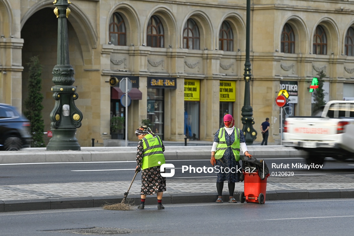Günün erkən saatlarında işə başlayan kommunal xidmət işçiləri