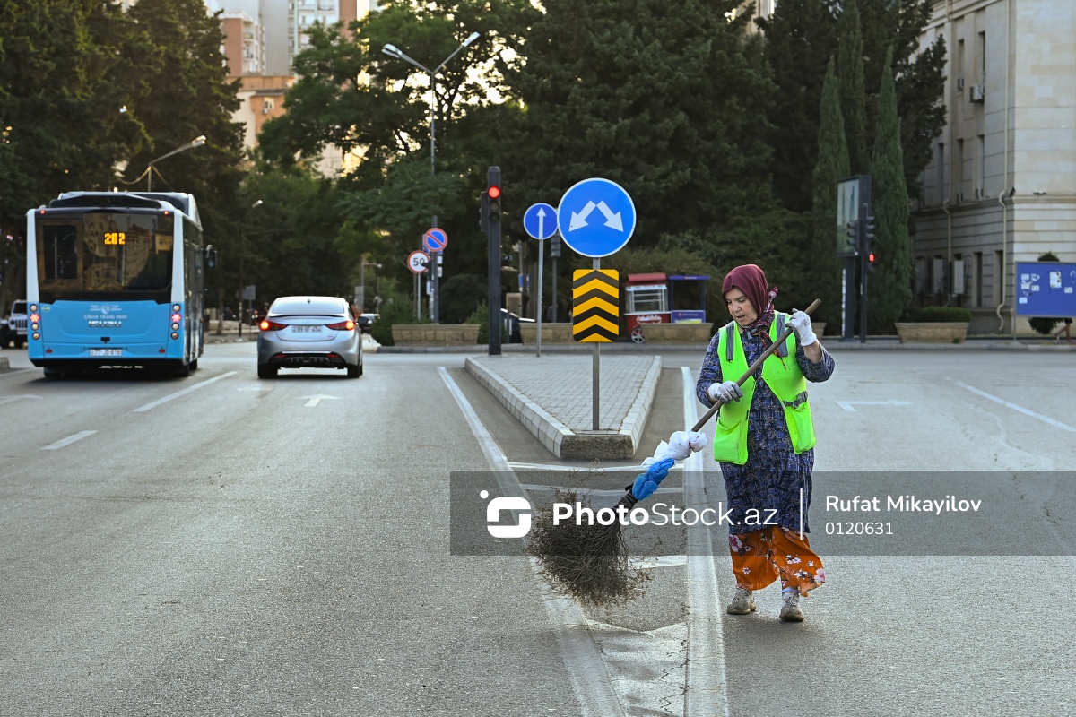 Günün erkən saatlarında işə başlayan kommunal xidmət işçiləri