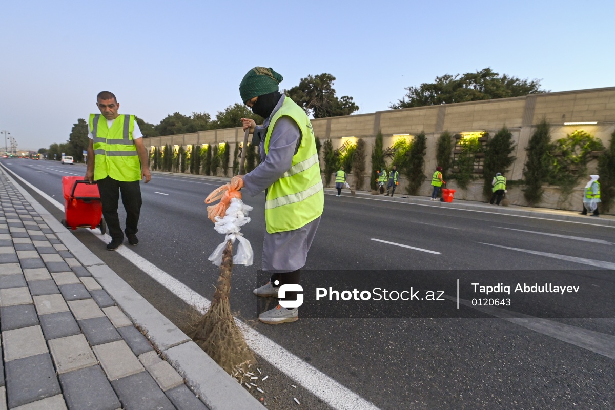 Günün erkən saatlarında işə başlayan kommunal xidmət işçiləri