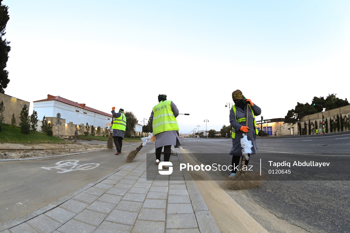 Günün erkən saatlarında işə başlayan kommunal xidmət işçiləri