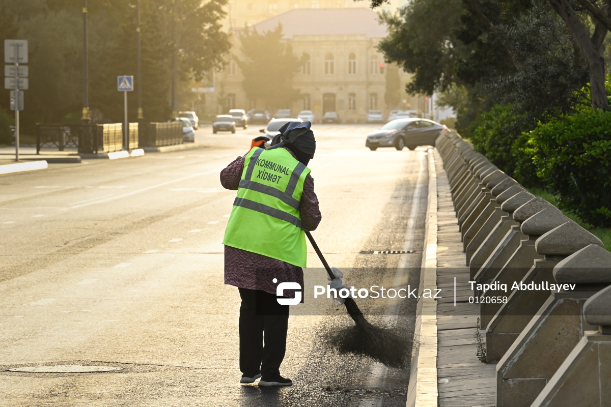 Günün erkən saatlarında işə başlayan kommunal xidmət işçiləri
