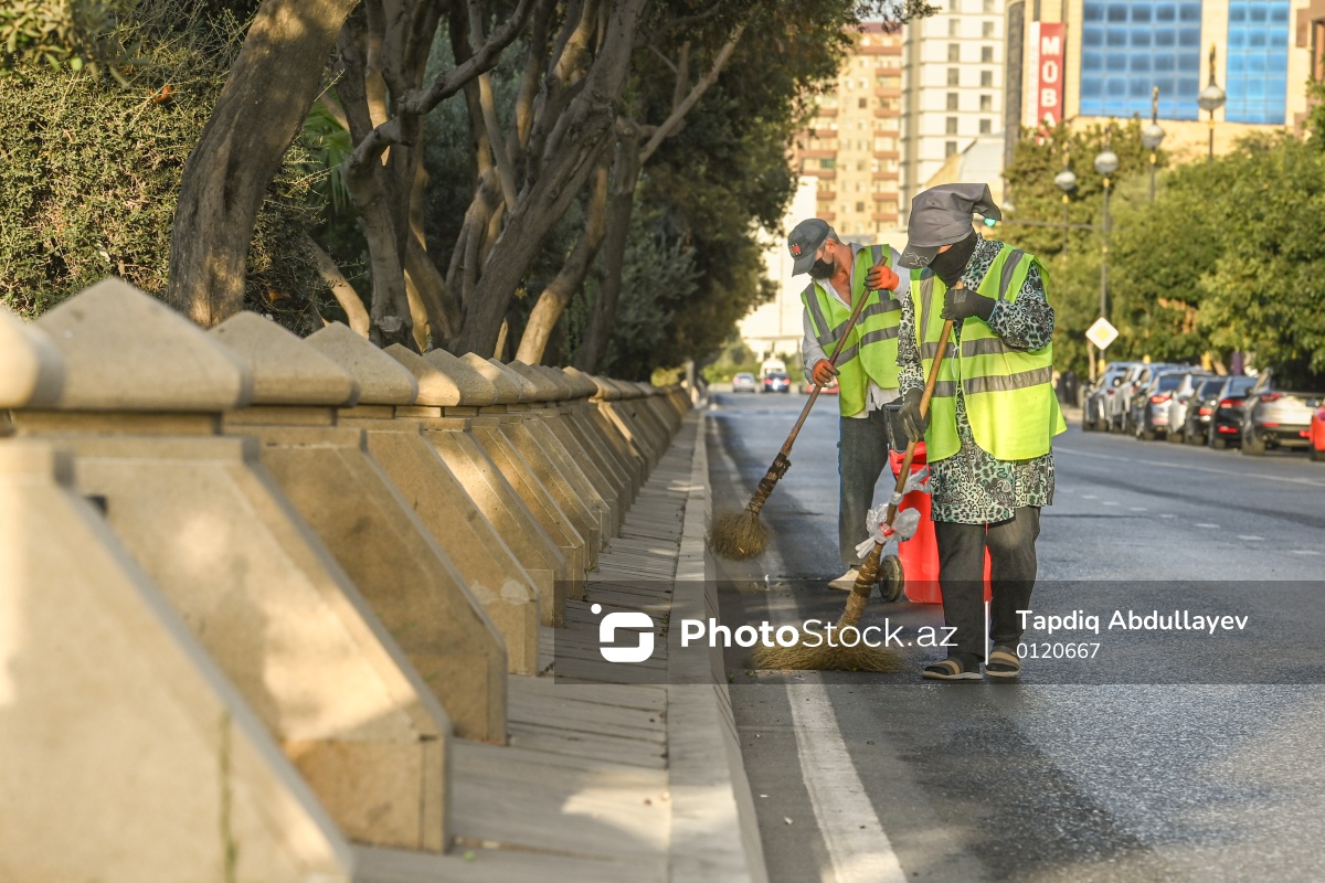 Günün erkən saatlarında işə başlayan kommunal xidmət işçiləri