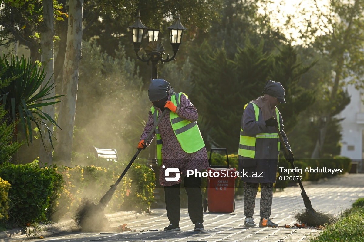 Günün erkən saatlarında işə başlayan kommunal xidmət işçiləri