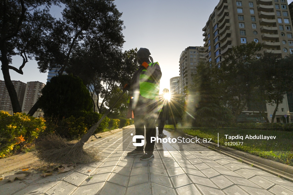 Günün erkən saatlarında işə başlayan kommunal xidmət işçiləri