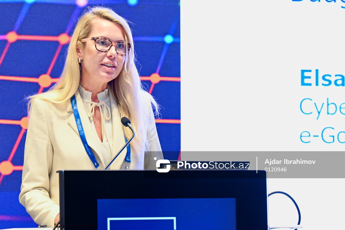 “Dövlət qurumlarının İT rəhbərlərinin VI Zirvə Toplantısı”nda çıxış edən "eGA"nın kibertəhlükəsizlik üzrə baş mütəxəssisi Elsa Neeme.