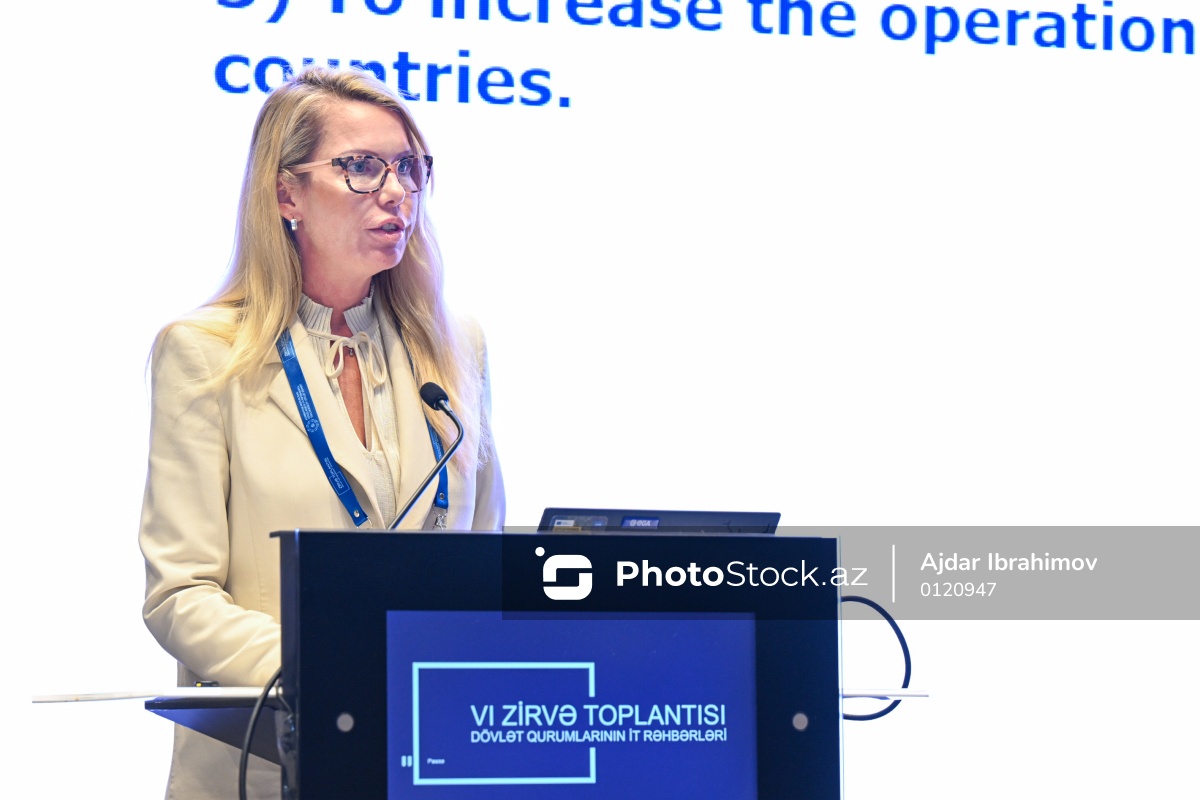 “Dövlət qurumlarının İT rəhbərlərinin VI Zirvə Toplantısı”nda çıxış edən "eGA"nın kibertəhlükəsizlik üzrə baş mütəxəssisi Elsa Neeme.