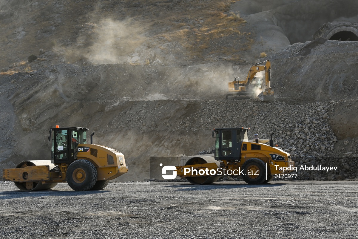 Horadiz-Ağbənd dəmir yolu xətti vasitəsilə Araz İqtisadi Zonası Sənaye Parkına yüklərin daşınmasına start verilib. Ümumi uzunluğu 110,4 kilometr olan dəmir yolu xətti yan yollarla birlikdə 140,6 kilometrdir. Layihə çərçivəsində 9 stansiya, 9 körpü, 26 avtomobil keçidi, 3 qalereya, 4 tunel və ümumilikdə 500-dən çox mühəndis qurğularının tikintisi həyata keçirilir. Ox üzrə 60 metr enində minatəmizləmə işləri başa çatdırılıb. Tikinti-quraşdırma işləri 3 mərhələdə həyata keçirilir. Birinci mərhələdə işlərin böyük hissəsi tamamlanıb, artıq dəmir yolu xətti vasitəsilə Araz İqtisadi Zonası Sənaye Parkına yüklərin daşınması həyata keçirilir. Hazırda 2 və 3-cü mərhələ üzrə torpaq işləri və mühəndis qurğularının tikintisi həyata keçirilir. Layihənin ikinci mərhələsi üzrə təbii relyef Xudafərin hidroqovşağının maksimal qalxma səviyyəsindən aşağıda yerləşdiyinə görə dəmir yolunun Xudafərin hidroqovşağının suyundan qorunması üçün əlavə körpülər tikilib. 3-cü mərhələ üzrə torpaq işləri və mühəndis qurğuları, o cümlədən 3 ədəd tunelin inşası davam edir. Tunellərdən 2-si qapalı, 1-i isə açıq üsulla inşa edilir. Qapalı üsulla inşa edilən tunellərdə qazma işləri yekunlaşdırılıb, dəmir-beton işləri bitmək üzrədir. Açıq üsulla inşa edilən tuneldə isə beton-suvaq işləri sürətlə davam etdirilir. Horadiz-Ağbənd dəmir yolunun ox üzrə 75,6 km hissəsində rels-şpal çərçivələri quraşdırılıb. Dəmir yolu xəttinin layihələndirilməsi işlərinin 84 %-i, tikinti-quraşdırma işlərinin isə 67 %-i başa çatdırılıb. Horadiz–Ağbənd dəmir yolunun tikintisinin 2026-cı ildə tam başa çatdırılması planlaşdırılır.