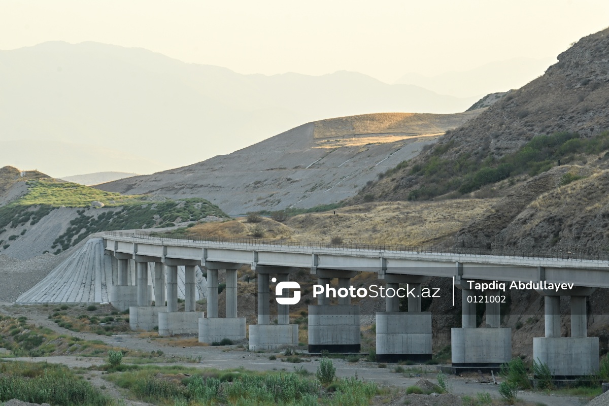 Horadiz-Ağbənd dəmir yolu xətti vasitəsilə Araz İqtisadi Zonası Sənaye Parkına yüklərin daşınmasına start verilib. Ümumi uzunluğu 110,4 kilometr olan dəmir yolu xətti yan yollarla birlikdə 140,6 kilometrdir. Layihə çərçivəsində 9 stansiya, 9 körpü, 26 avtomobil keçidi, 3 qalereya, 4 tunel və ümumilikdə 500-dən çox mühəndis qurğularının tikintisi həyata keçirilir. Ox üzrə 60 metr enində minatəmizləmə işləri başa çatdırılıb. Tikinti-quraşdırma işləri 3 mərhələdə həyata keçirilir. Birinci mərhələdə işlərin böyük hissəsi tamamlanıb, artıq dəmir yolu xətti vasitəsilə Araz İqtisadi Zonası Sənaye Parkına yüklərin daşınması həyata keçirilir. Hazırda 2 və 3-cü mərhələ üzrə torpaq işləri və mühəndis qurğularının tikintisi həyata keçirilir. Layihənin ikinci mərhələsi üzrə təbii relyef Xudafərin hidroqovşağının maksimal qalxma səviyyəsindən aşağıda yerləşdiyinə görə dəmir yolunun Xudafərin hidroqovşağının suyundan qorunması üçün əlavə körpülər tikilib. 3-cü mərhələ üzrə torpaq işləri və mühəndis qurğuları, o cümlədən 3 ədəd tunelin inşası davam edir. Tunellərdən 2-si qapalı, 1-i isə açıq üsulla inşa edilir. Qapalı üsulla inşa edilən tunellərdə qazma işləri yekunlaşdırılıb, dəmir-beton işləri bitmək üzrədir. Açıq üsulla inşa edilən tuneldə isə beton-suvaq işləri sürətlə davam etdirilir. Horadiz-Ağbənd dəmir yolunun ox üzrə 75,6 km hissəsində rels-şpal çərçivələri quraşdırılıb. Dəmir yolu xəttinin layihələndirilməsi işlərinin 84 %-i, tikinti-quraşdırma işlərinin isə 67 %-i başa çatdırılıb. Horadiz–Ağbənd dəmir yolunun tikintisinin 2026-cı ildə tam başa çatdırılması planlaşdırılır.