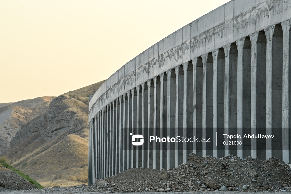 Horadiz-Ağbənd dəmir yolu xətti vasitəsilə Araz İqtisadi Zonası Sənaye Parkına yüklərin daşınmasına start verilib. Ümumi uzunluğu 110,4 kilometr olan dəmir yolu xətti yan yollarla birlikdə 140,6 kilometrdir. Layihə çərçivəsində 9 stansiya, 9 körpü, 26 avtomobil keçidi, 3 qalereya, 4 tunel və ümumilikdə 500-dən çox mühəndis qurğularının tikintisi həyata keçirilir. Ox üzrə 60 metr enində minatəmizləmə işləri başa çatdırılıb. Tikinti-quraşdırma işləri 3 mərhələdə həyata keçirilir. Birinci mərhələdə işlərin böyük hissəsi tamamlanıb, artıq dəmir yolu xətti vasitəsilə Araz İqtisadi Zonası Sənaye Parkına yüklərin daşınması həyata keçirilir. Hazırda 2 və 3-cü mərhələ üzrə torpaq işləri və mühəndis qurğularının tikintisi həyata keçirilir. Layihənin ikinci mərhələsi üzrə təbii relyef Xudafərin hidroqovşağının maksimal qalxma səviyyəsindən aşağıda yerləşdiyinə görə dəmir yolunun Xudafərin hidroqovşağının suyundan qorunması üçün əlavə körpülər tikilib. 3-cü mərhələ üzrə torpaq işləri və mühəndis qurğuları, o cümlədən 3 ədəd tunelin inşası davam edir. Tunellərdən 2-si qapalı, 1-i isə açıq üsulla inşa edilir. Qapalı üsulla inşa edilən tunellərdə qazma işləri yekunlaşdırılıb, dəmir-beton işləri bitmək üzrədir. Açıq üsulla inşa edilən tuneldə isə beton-suvaq işləri sürətlə davam etdirilir. Horadiz-Ağbənd dəmir yolunun ox üzrə 75,6 km hissəsində rels-şpal çərçivələri quraşdırılıb. Dəmir yolu xəttinin layihələndirilməsi işlərinin 84 %-i, tikinti-quraşdırma işlərinin isə 67 %-i başa çatdırılıb. Horadiz–Ağbənd dəmir yolunun tikintisinin 2026-cı ildə tam başa çatdırılması planlaşdırılır.