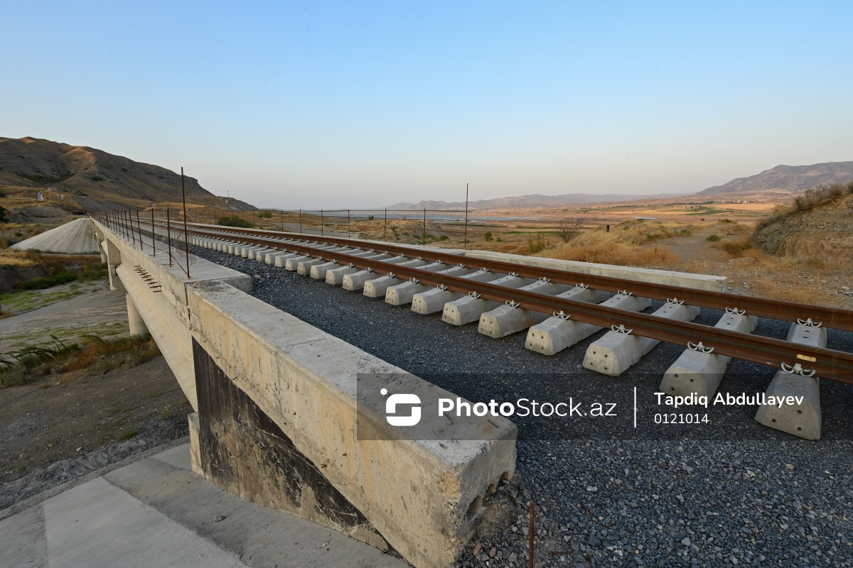 Horadiz-Ağbənd dəmir yolu xətti vasitəsilə Araz İqtisadi Zonası Sənaye Parkına yüklərin daşınmasına start verilib. Ümumi uzunluğu 110,4 kilometr olan dəmir yolu xətti yan yollarla birlikdə 140,6 kilometrdir. Layihə çərçivəsində 9 stansiya, 9 körpü, 26 avtomobil keçidi, 3 qalereya, 4 tunel və ümumilikdə 500-dən çox mühəndis qurğularının tikintisi həyata keçirilir. Ox üzrə 60 metr enində minatəmizləmə işləri başa çatdırılıb. Tikinti-quraşdırma işləri 3 mərhələdə həyata keçirilir. Birinci mərhələdə işlərin böyük hissəsi tamamlanıb, artıq dəmir yolu xətti vasitəsilə Araz İqtisadi Zonası Sənaye Parkına yüklərin daşınması həyata keçirilir. Hazırda 2 və 3-cü mərhələ üzrə torpaq işləri və mühəndis qurğularının tikintisi həyata keçirilir. Layihənin ikinci mərhələsi üzrə təbii relyef Xudafərin hidroqovşağının maksimal qalxma səviyyəsindən aşağıda yerləşdiyinə görə dəmir yolunun Xudafərin hidroqovşağının suyundan qorunması üçün əlavə körpülər tikilib. 3-cü mərhələ üzrə torpaq işləri və mühəndis qurğuları, o cümlədən 3 ədəd tunelin inşası davam edir. Tunellərdən 2-si qapalı, 1-i isə açıq üsulla inşa edilir. Qapalı üsulla inşa edilən tunellərdə qazma işləri yekunlaşdırılıb, dəmir-beton işləri bitmək üzrədir. Açıq üsulla inşa edilən tuneldə isə beton-suvaq işləri sürətlə davam etdirilir. Horadiz-Ağbənd dəmir yolunun ox üzrə 75,6 km hissəsində rels-şpal çərçivələri quraşdırılıb. Dəmir yolu xəttinin layihələndirilməsi işlərinin 84 %-i, tikinti-quraşdırma işlərinin isə 67 %-i başa çatdırılıb. Horadiz–Ağbənd dəmir yolunun tikintisinin 2026-cı ildə tam başa çatdırılması planlaşdırılır.