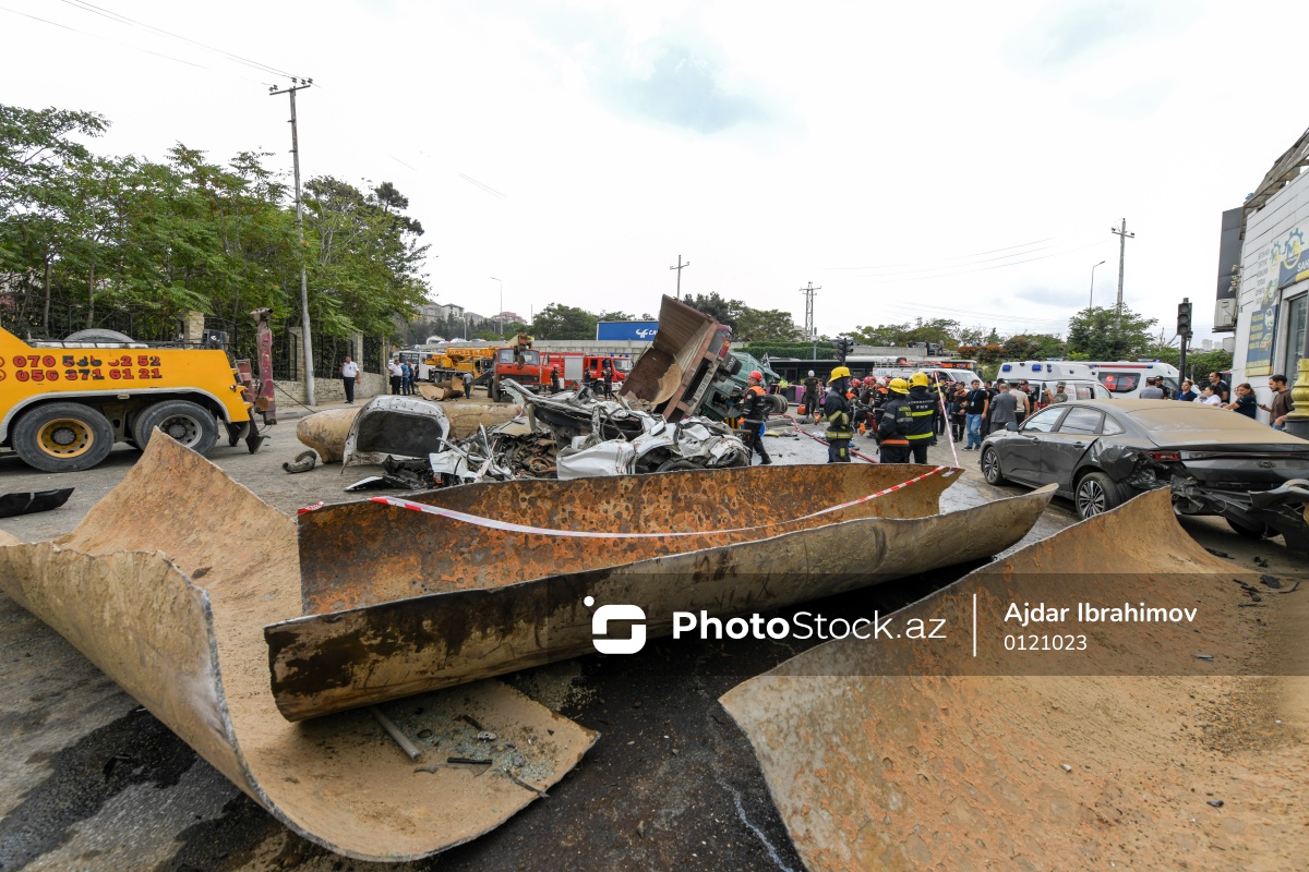 Bakıda yük maşını körpüdən avtomobillərin üstünə aşdı