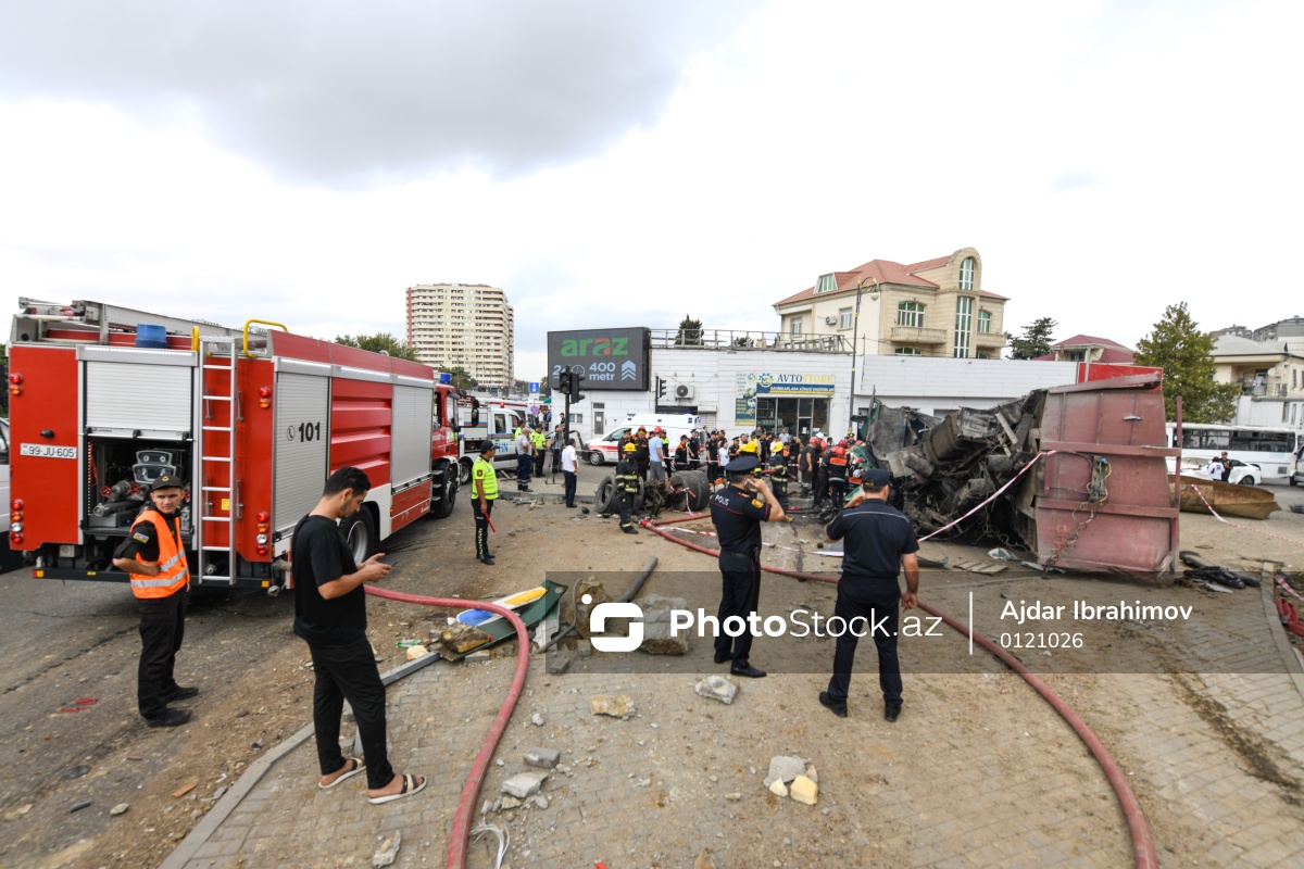 Bakıda yük maşını körpüdən avtomobillərin üstünə aşdı