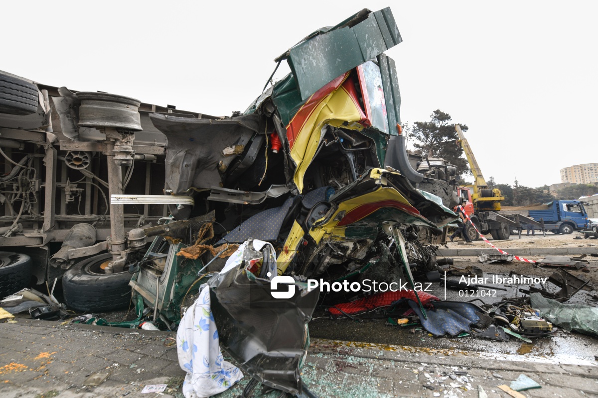 Bakıda yük maşını körpüdən avtomobillərin üstünə aşdı