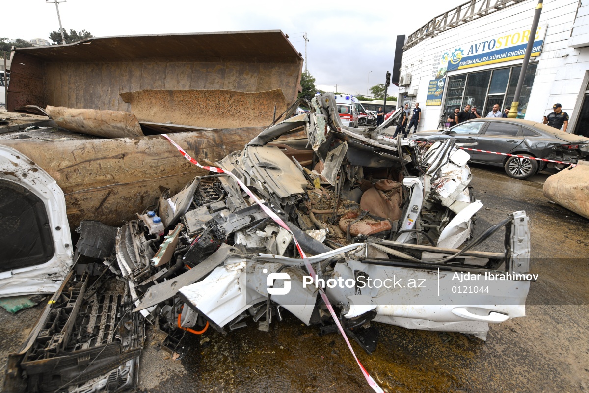 Bakıda yük maşını körpüdən avtomobillərin üstünə aşdı