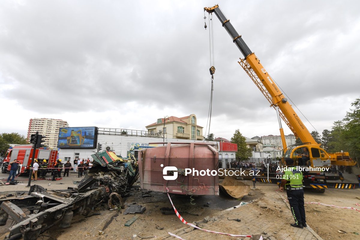 Bakıda yük maşını körpüdən avtomobillərin üstünə aşdı